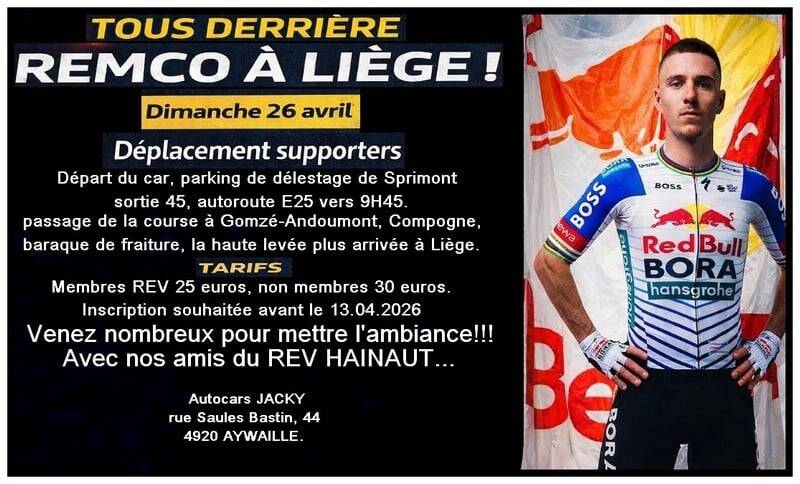 Lors d'Aubel-Thimister-Stavelot 2018, André eu un contact rapproché avec Remco et ses parents. C’est à partir de ce moment que l’idée de créer un fan club-liégeois de Remco a surgi . Avec l'accord du papa du jeune cycliste et l'aide d'une poignée de bénévoles, Le R.EV 1703 LIEGE a vu le jour.